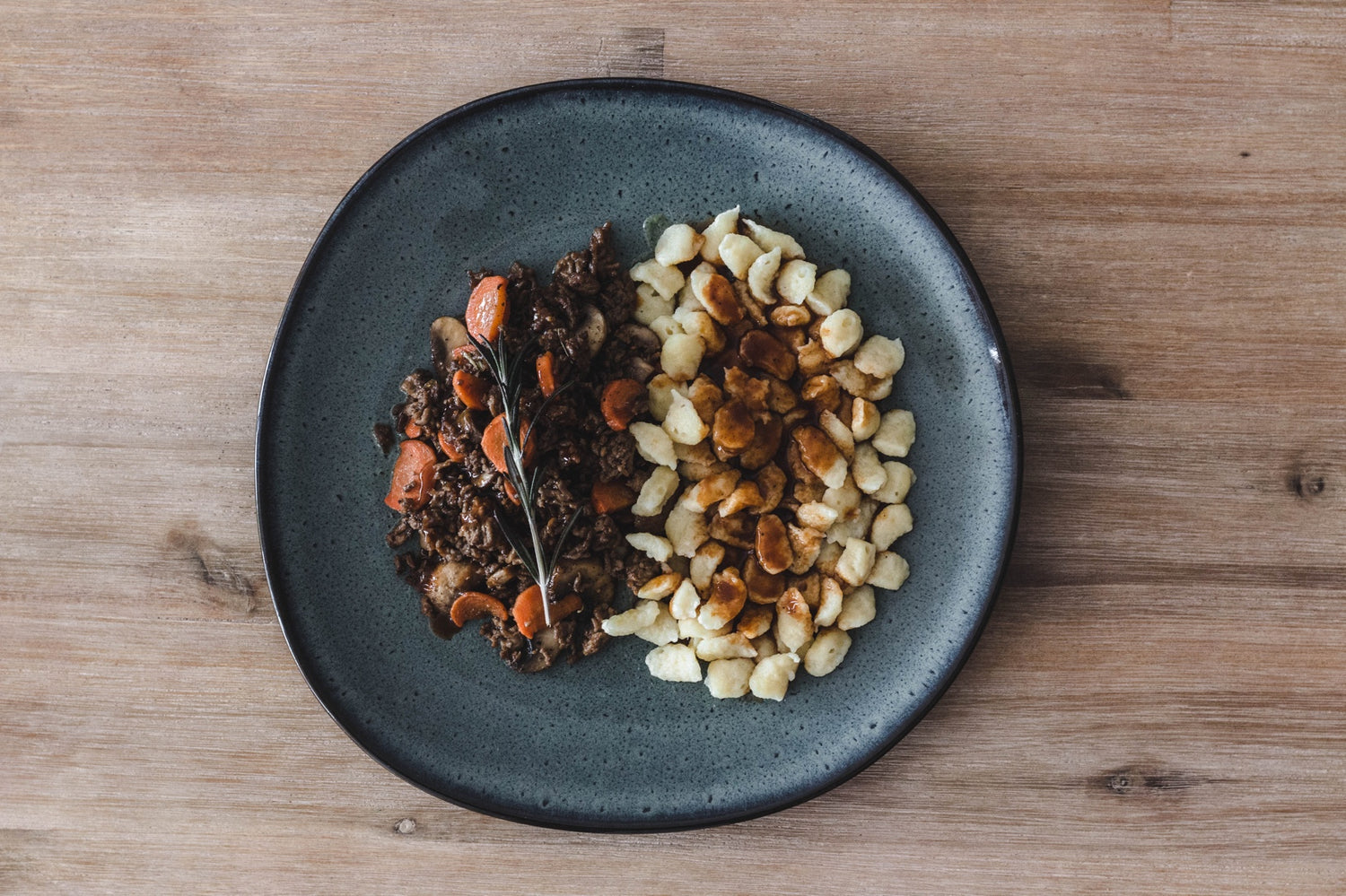 Hackfleisch mit Pilzen und schwäbischen Knöpfle